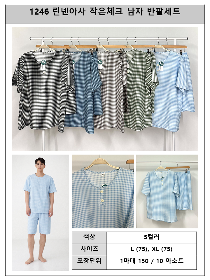 S1246 린넨아사)작은체크 남 반팔세트