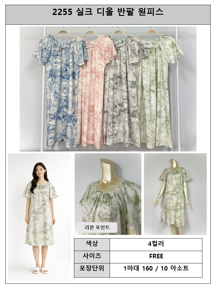 S2255 실크)디올 반팔 원피스