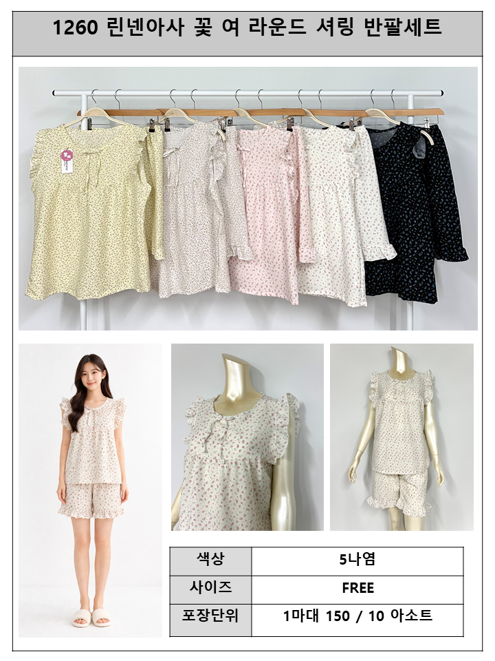 S1260 린넨아사)꽃 라운드 셔링 반팔여세트