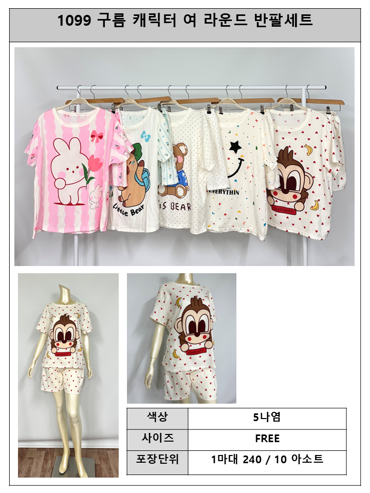 S1099구름캐릭터 반팔 라운드 여세트