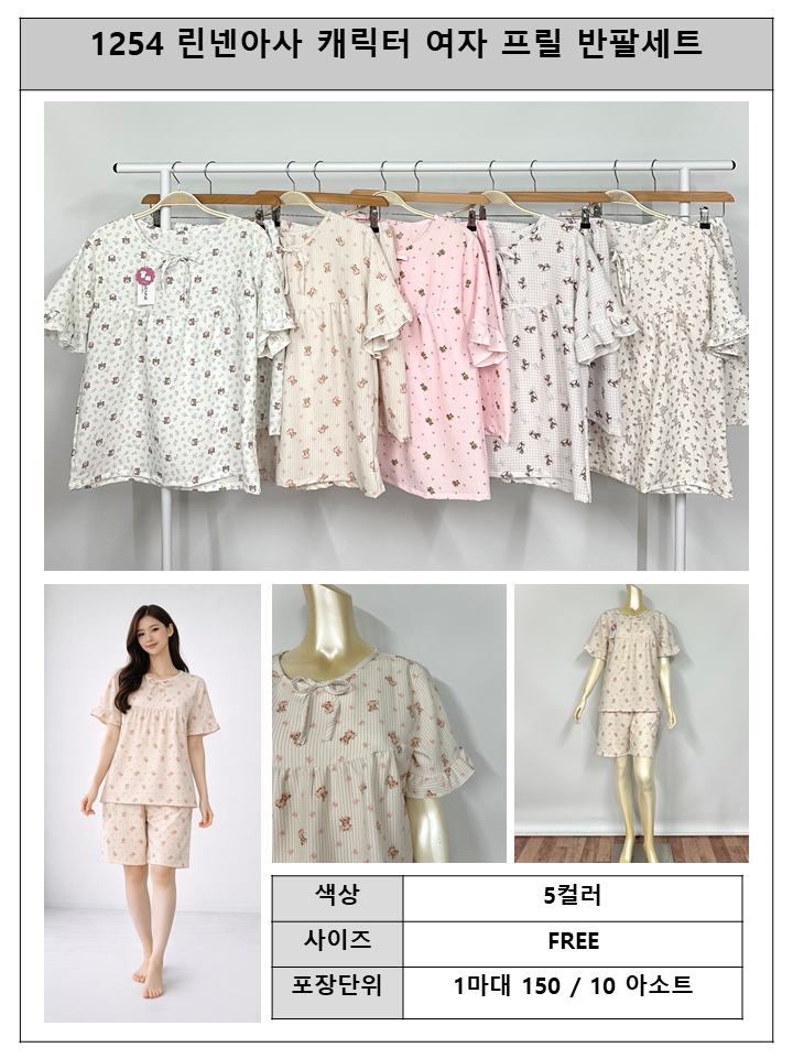 S1254 린넨아사)캐릭터 여 프릴 반팔세트