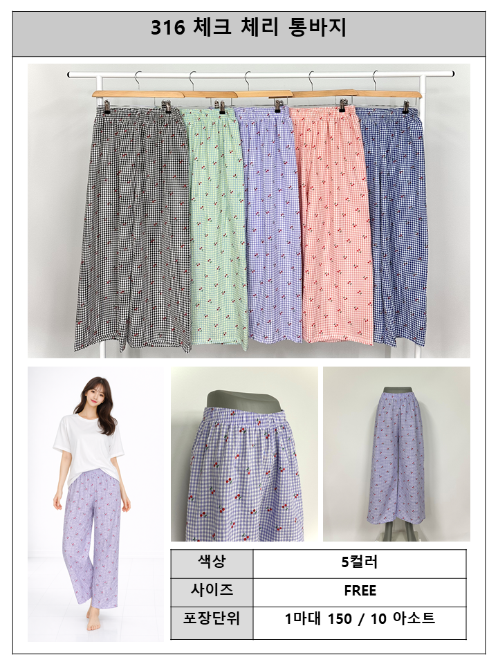 S319 체크 체리 통바지